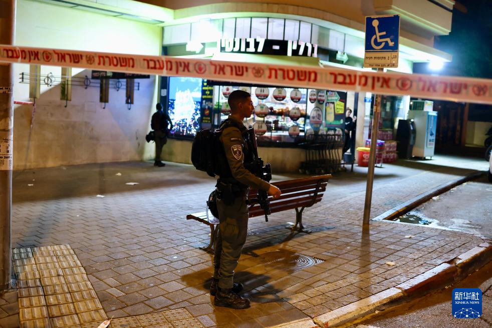 1月18日,安全人员在以色列特拉维夫持刀伤人事件发生地执勤。新华社发(贾迈勒·阿瓦德摄)