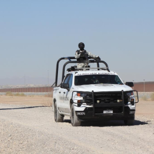 2月6日,在墨西哥奇瓦瓦州华雷斯市,墨西哥国民警卫队员在墨美边境执行任务。