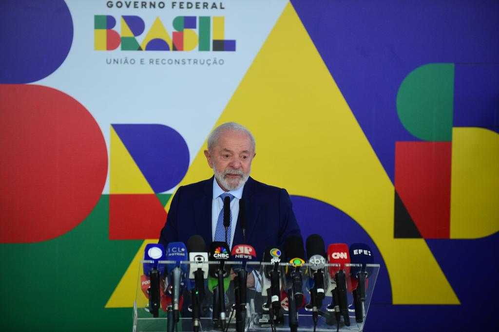 1月30日,巴西总统卢拉在首都巴西利亚总统府参加记者会。卢拉表示,如果美国对巴西商品加征关税,巴西将采取对等措施,对美国商品征收相应关税。新华社发(卢西奥·塔沃拉摄)