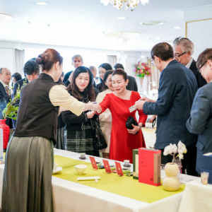 在茶席环节,侍茶师向嘉宾们奉上福建武夷山岩茶,展示不同山场和品种的独特风味。2022年,中国传统制茶技艺及相关习俗被联合国教科文组织列入人类非物质文化遗产代表作名录,其中武夷岩茶制作技艺位列其中。熹茗精选的“牛魁”“枞宗”两款武夷肉桂、水仙岩茶,采用武夷古法炭焙工艺,展现岩茶特有的香、清、甘、活特点,让与会嘉宾深切感受到中国传统制茶技艺的魅力。