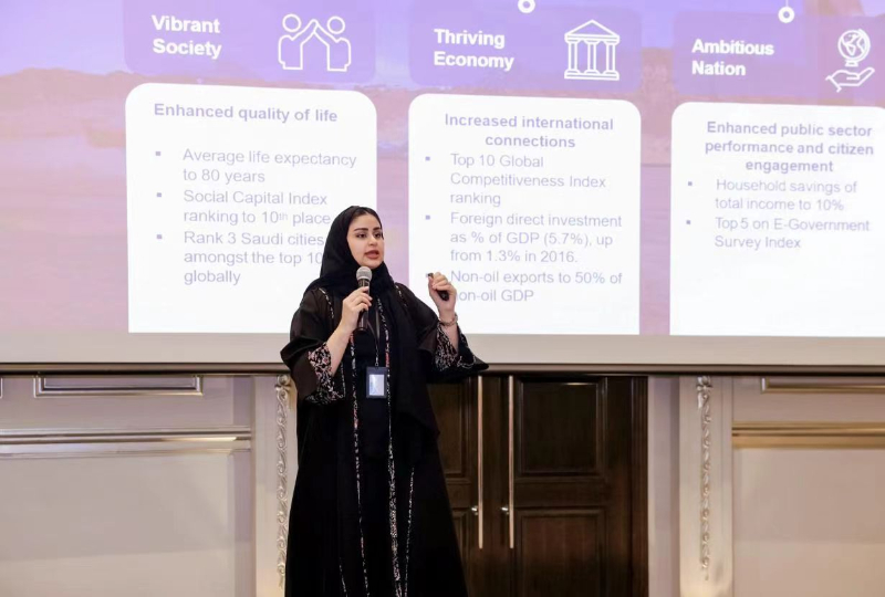 在机构推介环节,沙特投资部战略合作伙伴关系管理负责人Reem Nakiyah女士介绍了沙特“愿景2030”和特大项目,展示了沙特经济转型的宏伟蓝图。