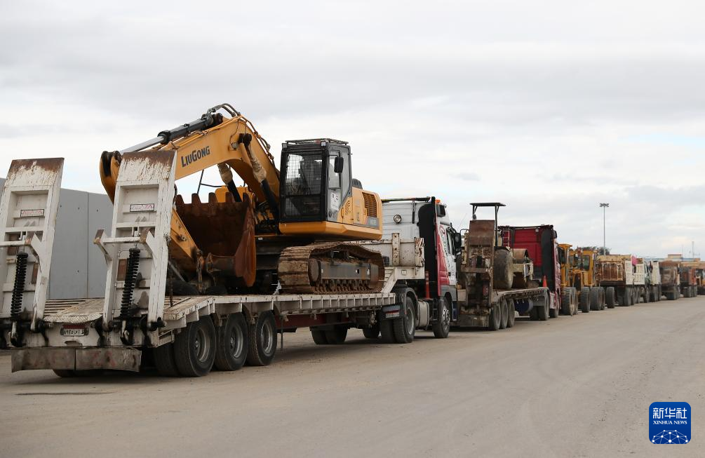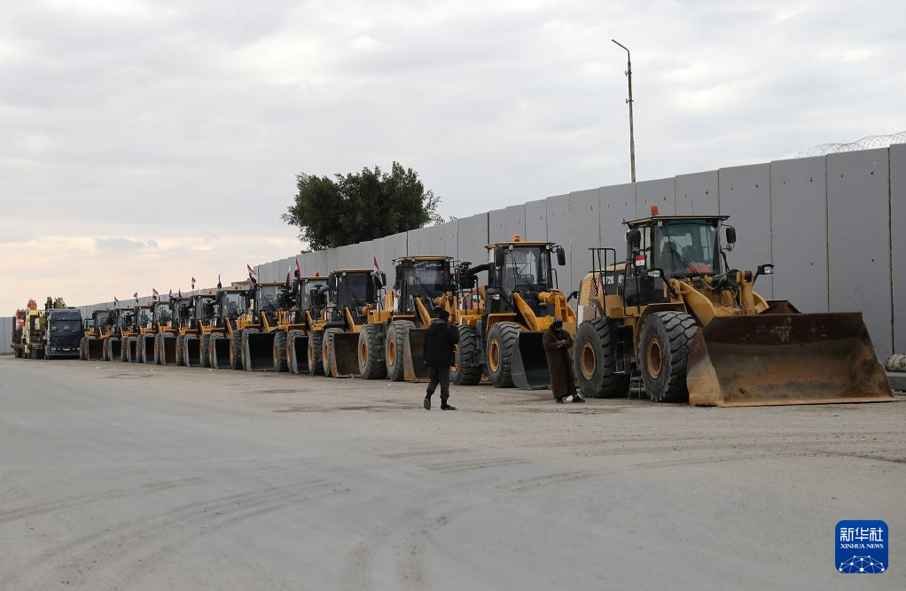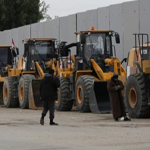 2月24日,工程车辆在拉法口岸埃及一侧等待进入加沙。