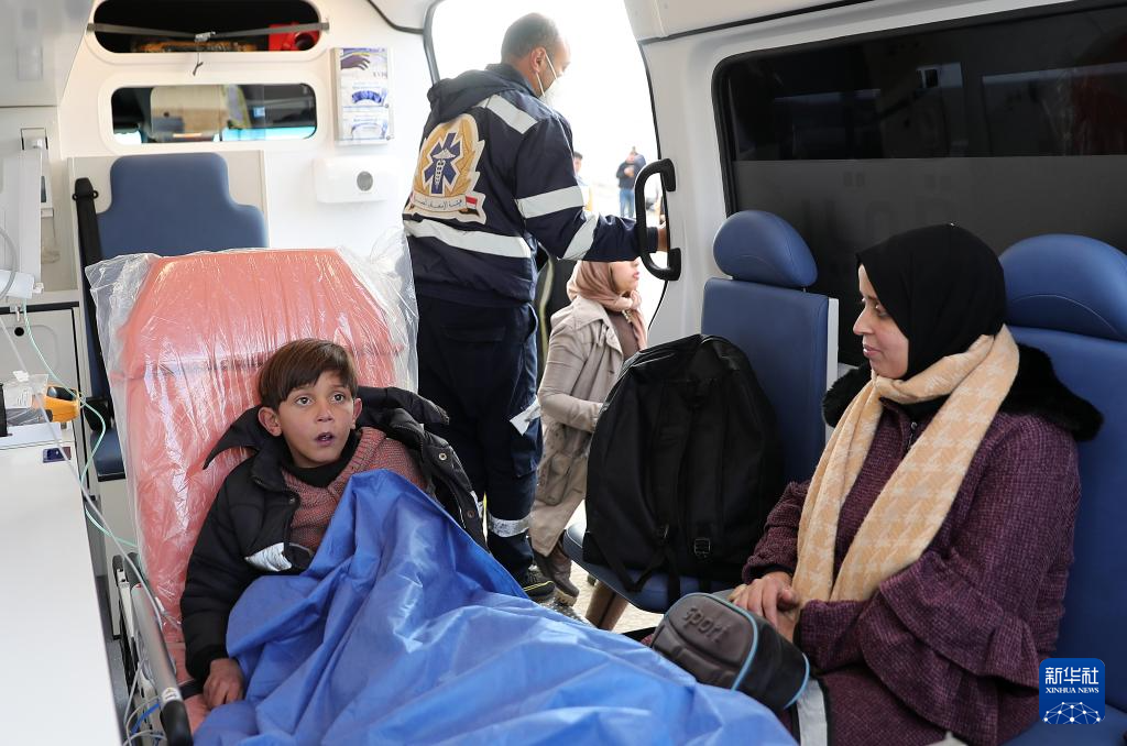 2月24日,在拉法口岸埃及一侧,来自加沙的患者通过拉法口岸进入埃及。
