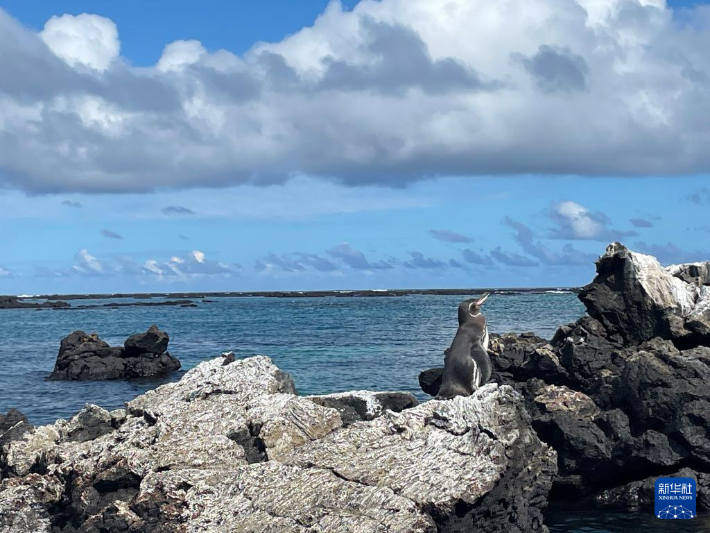 这是2月19日在厄瓜多尔加拉帕戈斯群岛拍摄的加拉帕戈斯企鹅(手机照片)。