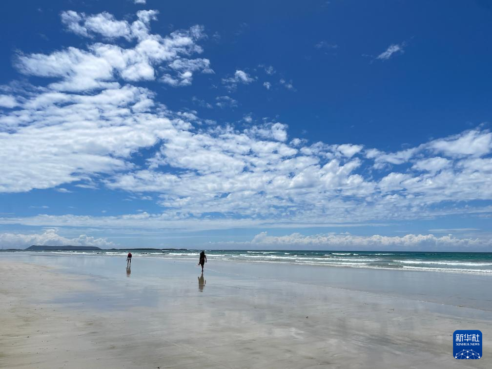 2月18日,游客在厄瓜多尔加拉帕戈斯群岛的海边散步(手机照片)。