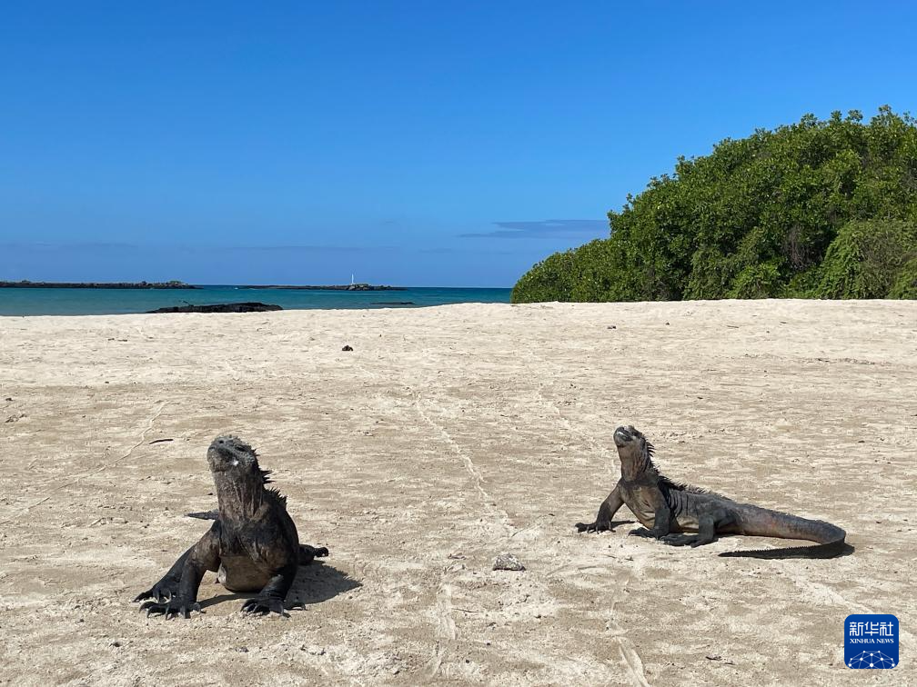 这是2月18日在厄瓜多尔加拉帕戈斯群岛拍摄的海鬣蜥(手机照片)。