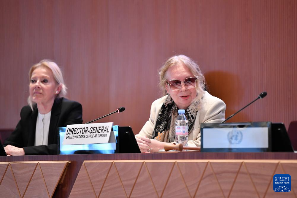 3月7日,在瑞士日内瓦万国宫,联合国日内瓦办事处总干事瓦罗瓦娅在联合国国际劳动妇女节纪念活动暨北京世界妇女大会三十周年对话会上讲话。新华社记者 连漪 摄
