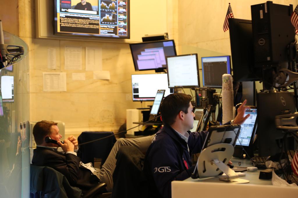 3月4日,交易员在美国纽约证券交易所交易大厅工作。新华社记者刘亚南摄