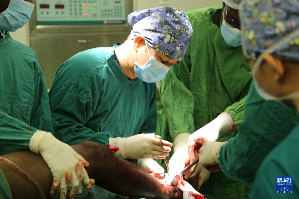 3月26日,在尼日尔综合示范医院,创伤骨科副主任医师农建部为患者做手术。新华社记者 司源 摄