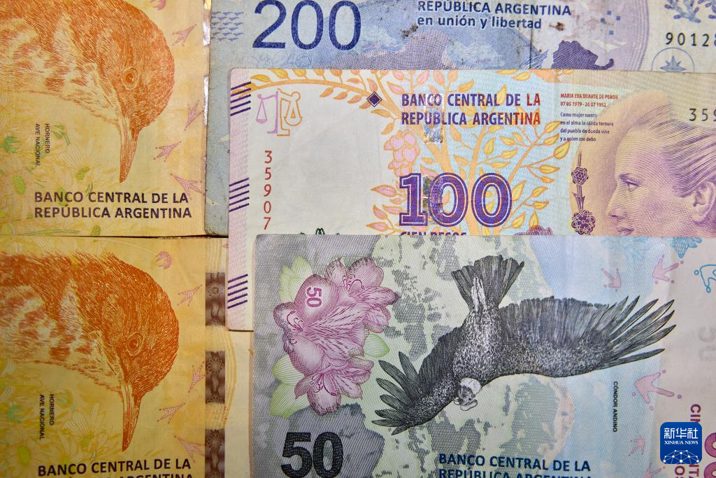 这是4月11日在阿根廷首都布宜诺斯艾利斯拍摄的阿根廷比索。新华社记者 孟鼎博 摄