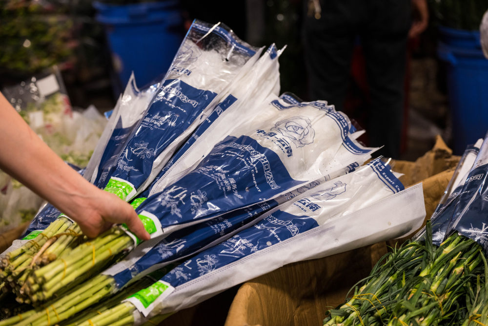 3月28日,在越南河内广霸花市,顾客购买产自中国云南的小手球。