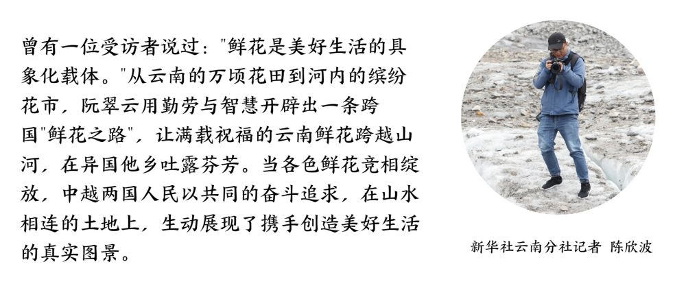 在节假日销售旺季驻守云南市场,日常依托昆明花易宝科技有限公司的数字化供应链,配合大客户线下看货的定制服务,这种“线上+线下”双轮驱动模式,使公司2024年10月至2025年3月的贸易额突破340万人民币。面对持续增长的需求,阮翠云计划未来在河内增设仓储中心。“云南是供应链源头,越南是消费市场,打通中间的‘最后一公里’是我们正在做的事。”她展示着手机中实时更新的订单数据表示,来自云南的鲜花不仅为越南消费者提供更多选择,也为当地花卉从业者创造了大量就业机会。
