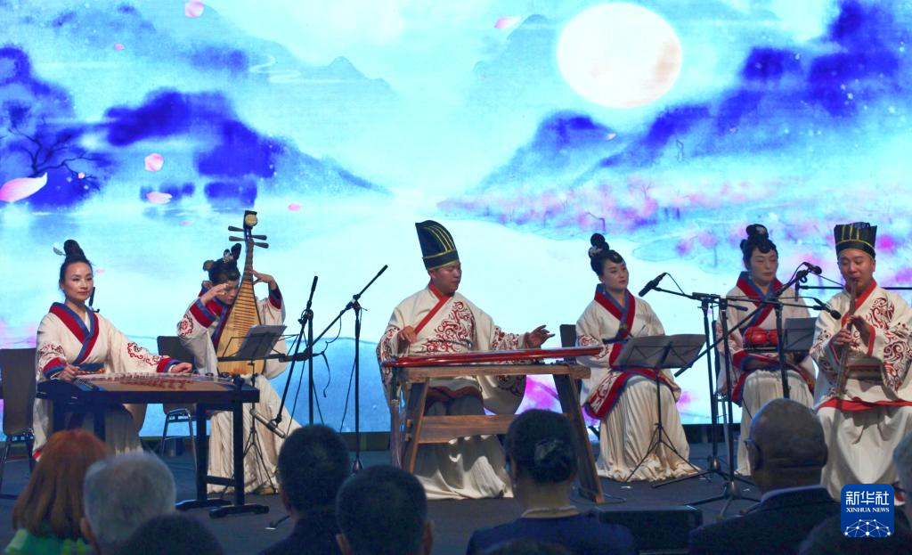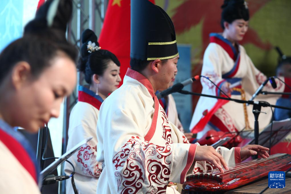 4月14日,表演者在奥地利维也纳联合国城举行的联合国中文日活动中演奏中国传统乐器。