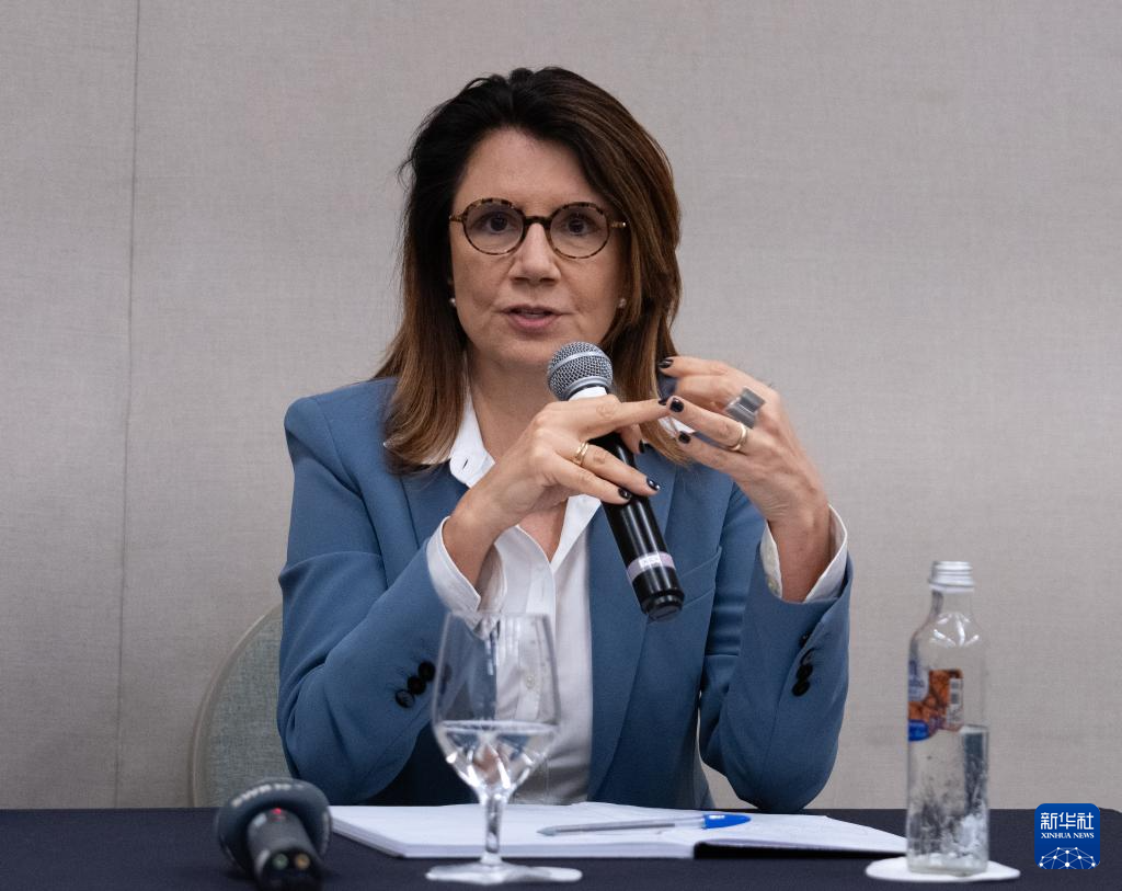 4月17日,在巴西里约热内卢,《联合国气候变化框架公约》第三十次缔约方大会(COP30)首席执行官安娜·托尼出席新闻发布会。新华社记者 王天聪 摄