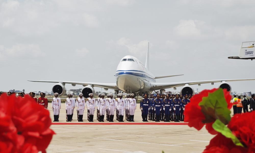 4月17日,国家主席习近平乘专机抵达金边,应柬埔寨国王西哈莫尼邀请,对柬埔寨进行国事访问。新华社记者 王晔 摄