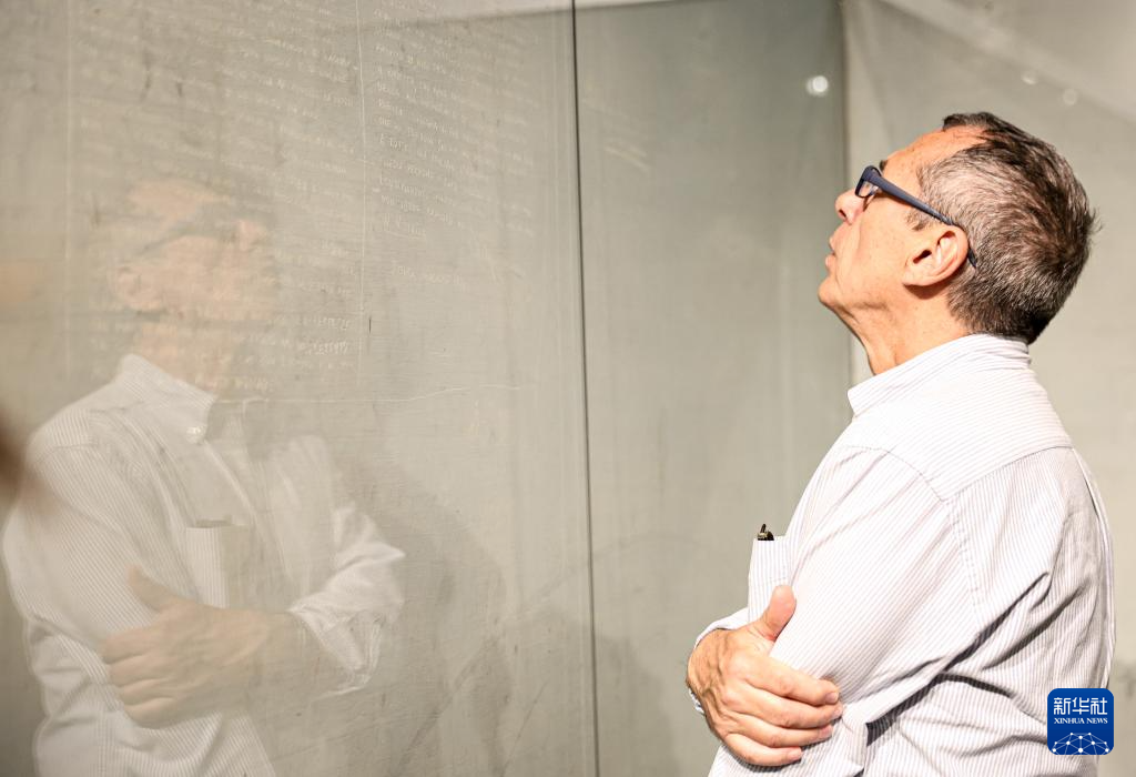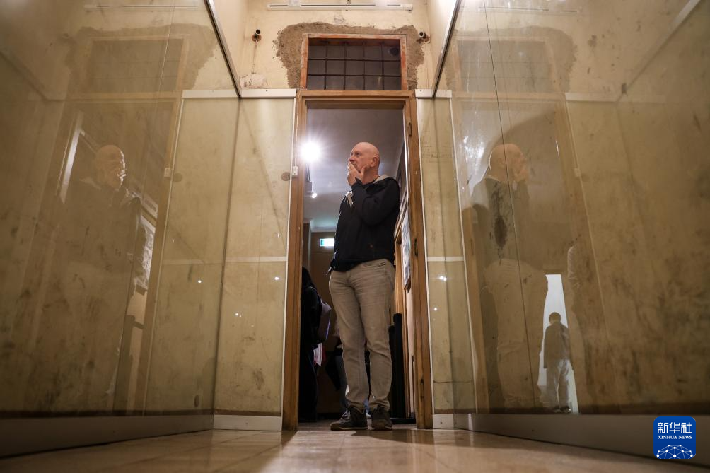 4月25日,在意大利罗马解放纪念馆,人们观看纳粹时期被关押人士在墙上留下的刻字。