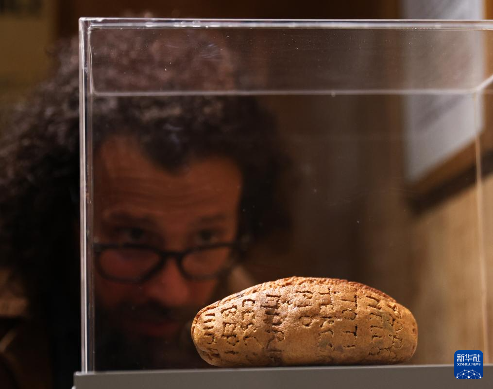 4月25日,人们在意大利罗马解放纪念馆参观一块由1944年保存至今的、由一名意大利抵抗运动成员刻字的面包。