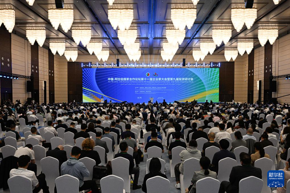 4月28日在海口拍摄的中阿合作论坛第十一届企业家大会暨第九届投资研讨会开幕式现场。新华社记者 蒲晓旭 摄