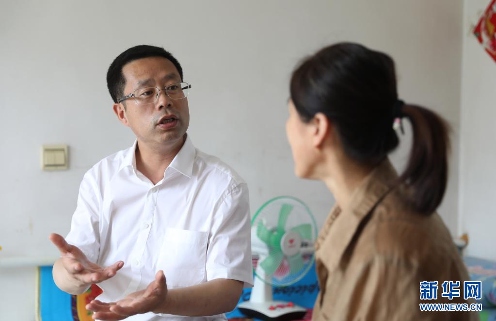 7月2日,在沈阳市沈北新区兴隆台街道单家村,闻然(左)与村民交谈。新华社记者 杨青 摄