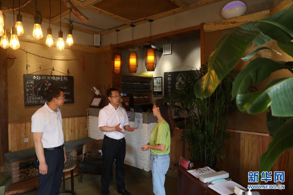 7月2日,在沈阳市沈北新区兴隆台街道单家村,闻然(中)在调研民宿发展情况。新华社记者 杨青 摄