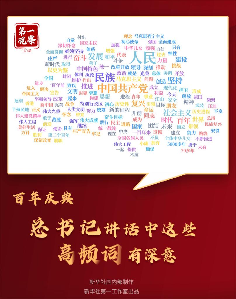 我们通过词云大数据梳理讲话中的高频词发现,出现86次“人民”、55次“民族”、54次“中国共产党”……这充分印证中国共产党的初心和使命,就是为中国人民谋幸福、为中华民族谋复兴。