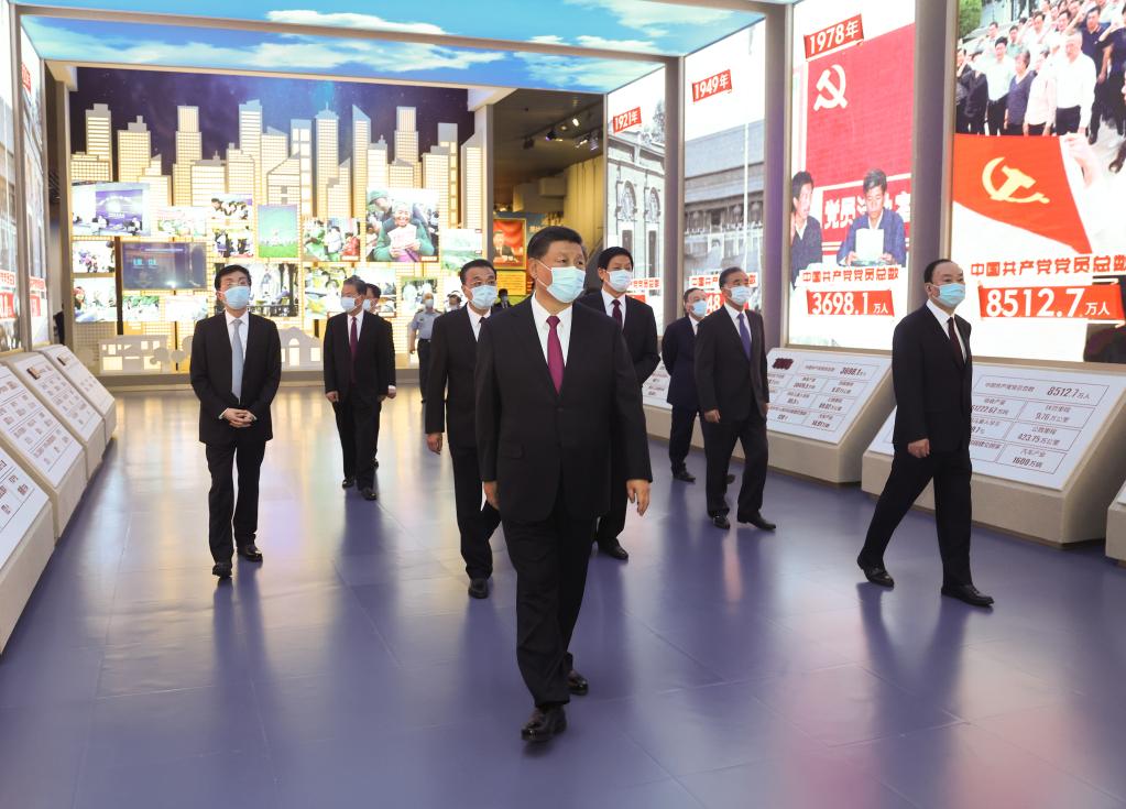 2021年6月18日,习近平等党和国家领导人参观“‘不忘初心、牢记使命’中国共产党历史展览”。 新华社记者 鞠鹏 摄