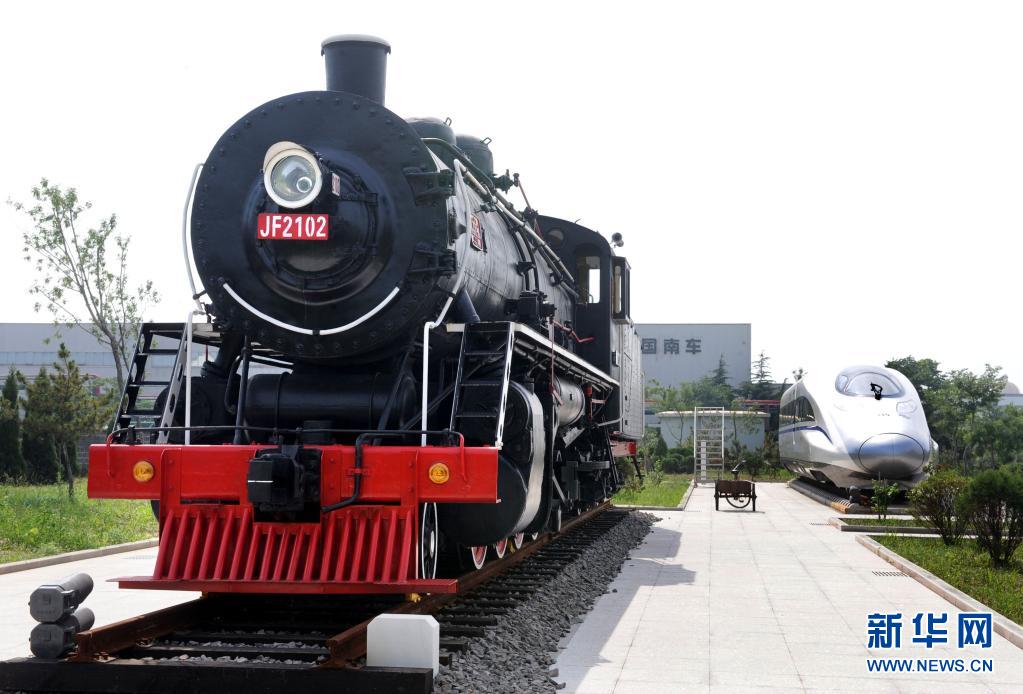 这是诞生于南车四方的新中国第一台蒸汽机车“八一号”(左)(2011年7月4日摄)。新华社记者 李紫恒 摄