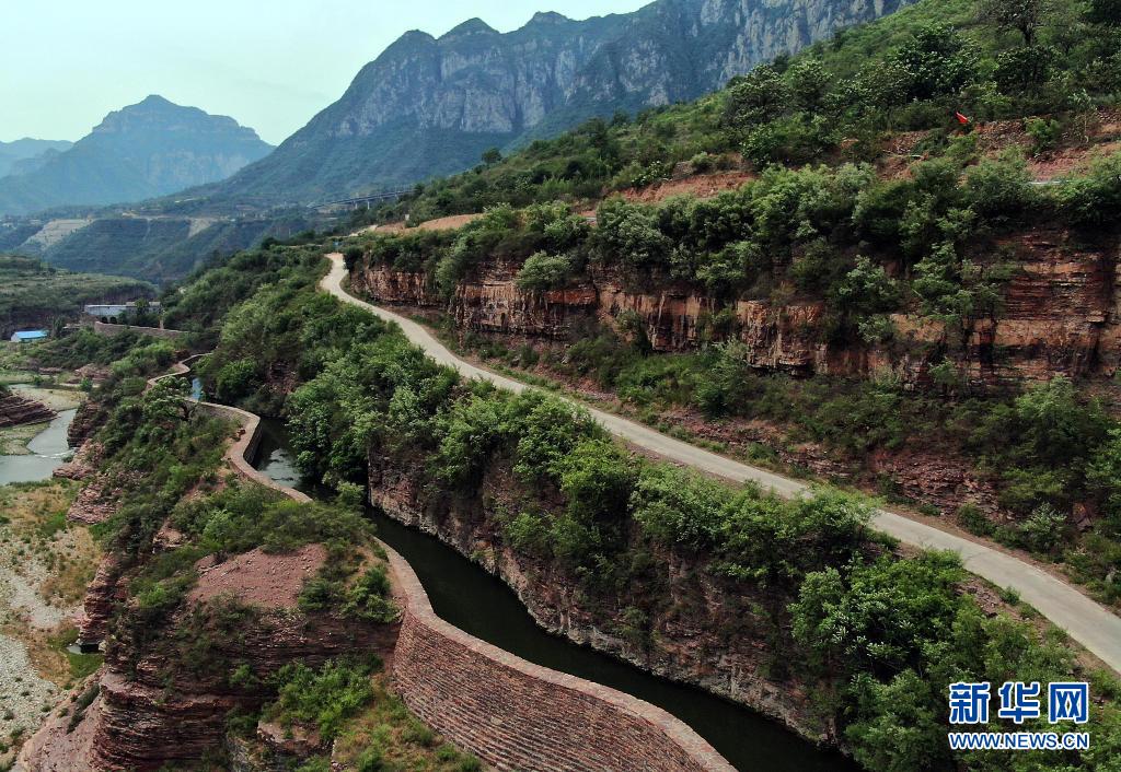 这是蜿蜒穿行于太行山间的红旗渠总干渠(2019年7月4日摄,无人机照片)。新华社记者 李安 摄