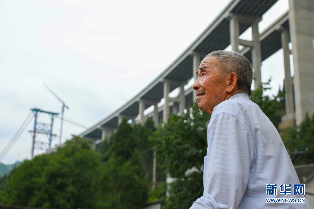 黄大发在村旁的高速公路大桥下(6月16日摄)。新华社记者 刘续 摄