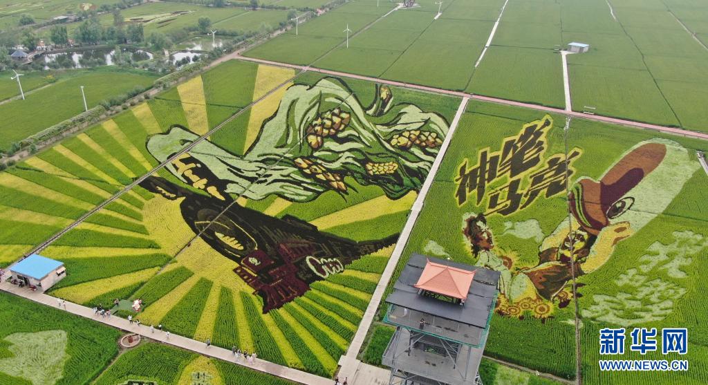 8月16日拍摄的稻田画《神笔马亮》,这里也是电影《我和我的家乡》取景地(无人机照片)。
