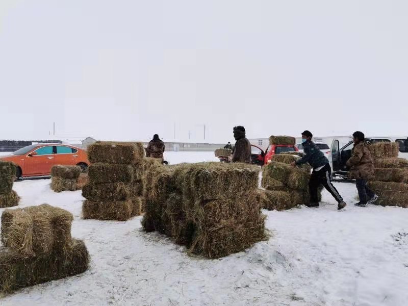 红原县瓦切乡牧民在冬季搬运储备草料喂养牲畜。(新华社发)