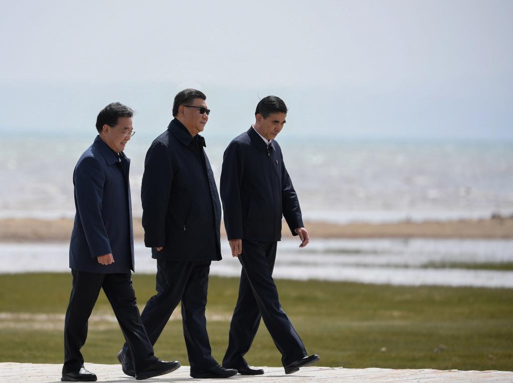 6月在青海湖畔考察生态环境保护情况——“保护好青海生态环境,是‘国之大者’”。
