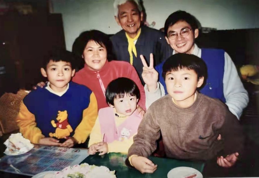 定居台湾后,林文芳始终不忘大陆亲人,一生注重对晚辈的教育。兄弟俩耳濡目染,民族情怀的种子早已深埋心中。图为林文芳(后一)林彦辰(前排右一)林冠廷(前排右三)