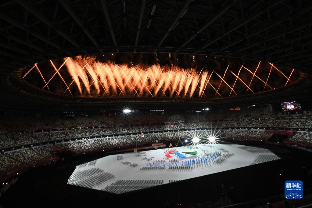 8月24日,第16届夏季残疾人奥林匹克运动会开幕式在日本东京举行。这是开幕式上的焰火表演。新华社记者 张金加 摄