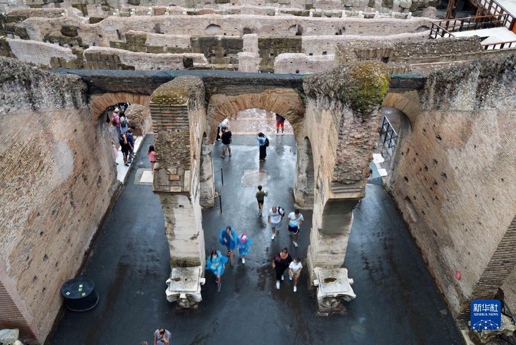8月24日,游客走出意大利罗马斗兽场的下层区域。