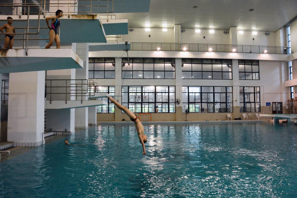 8月5日,跳水队员在福建省青少年体校跳水馆内训练。奥运健将背后,这是基层青少年体校的“大浪淘沙”。新华社记者邓倩倩摄