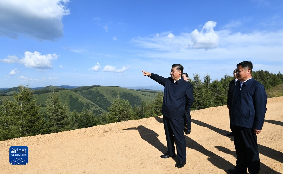 8月23日至24日,中共中央总书记、国家主席、中央军委主席习近平在河北省承德市考察。这是23日下午,习近平在塞罕坝机械林场月亮山考察。新华社记者 谢环驰 摄