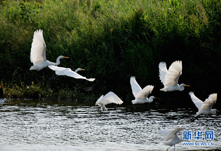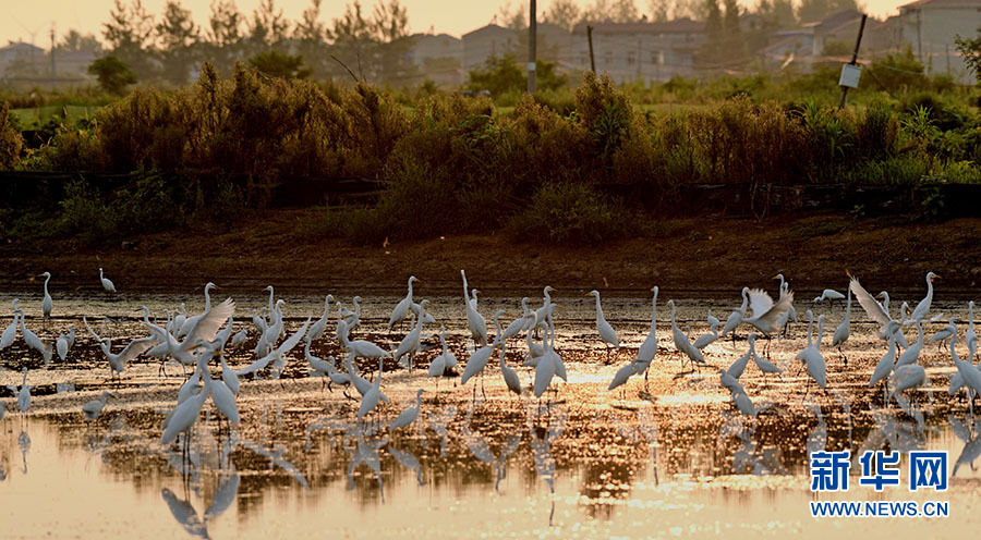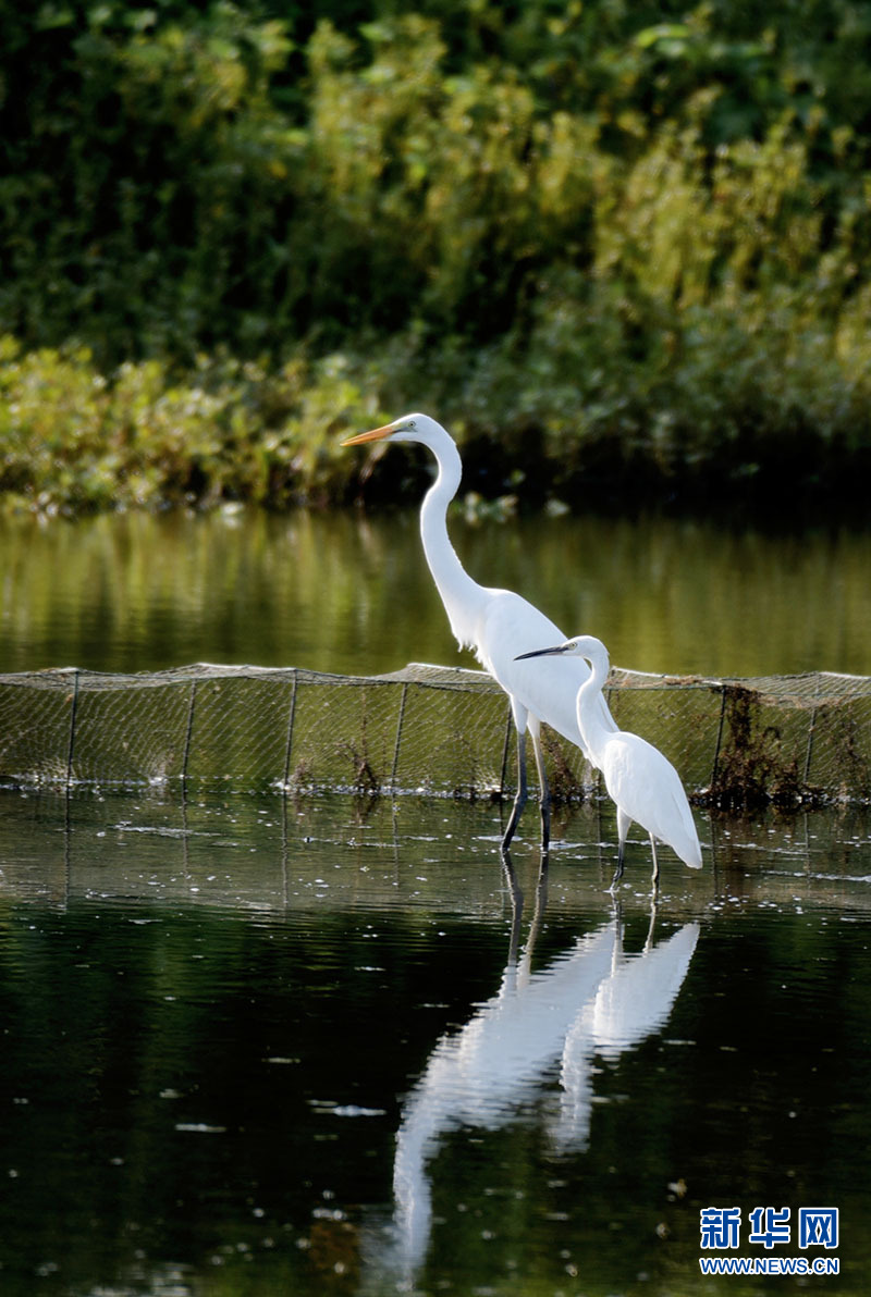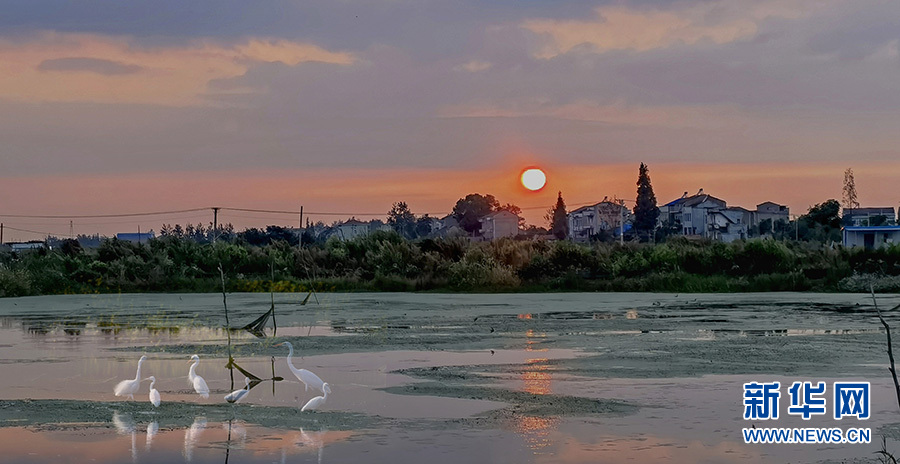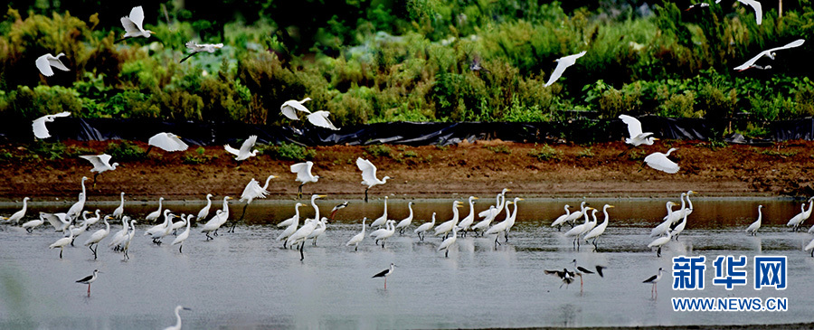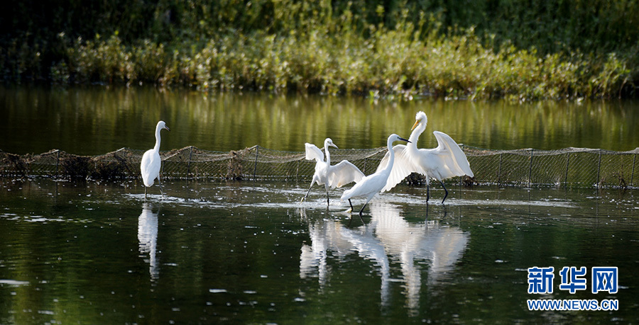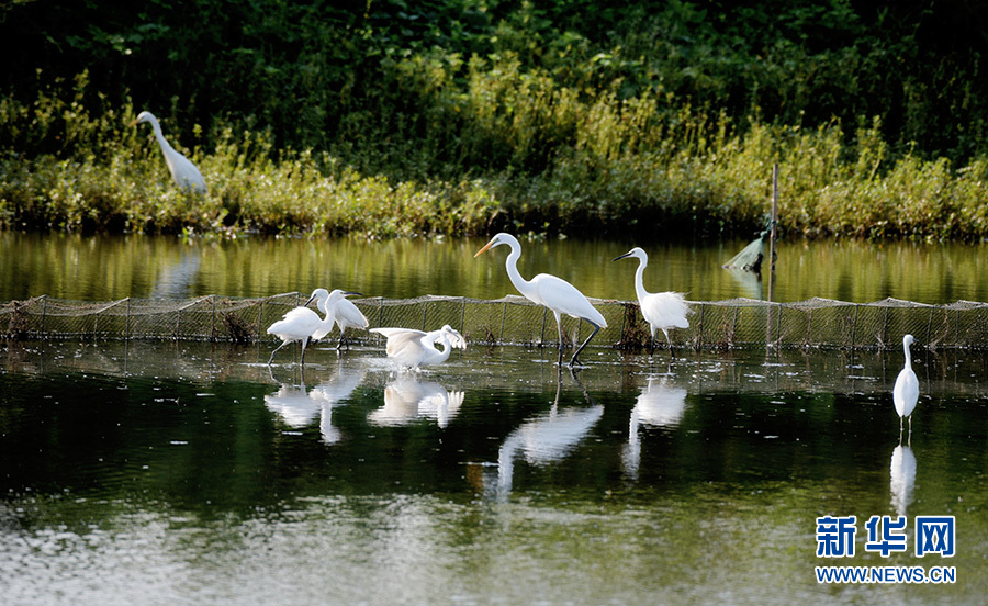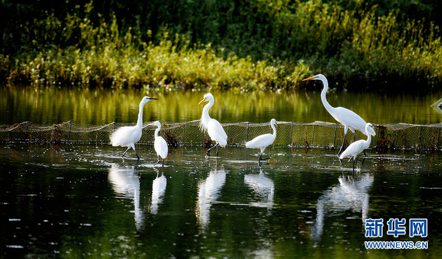 汉川市麻河镇包湖滩涂上的白鹭。新华网发