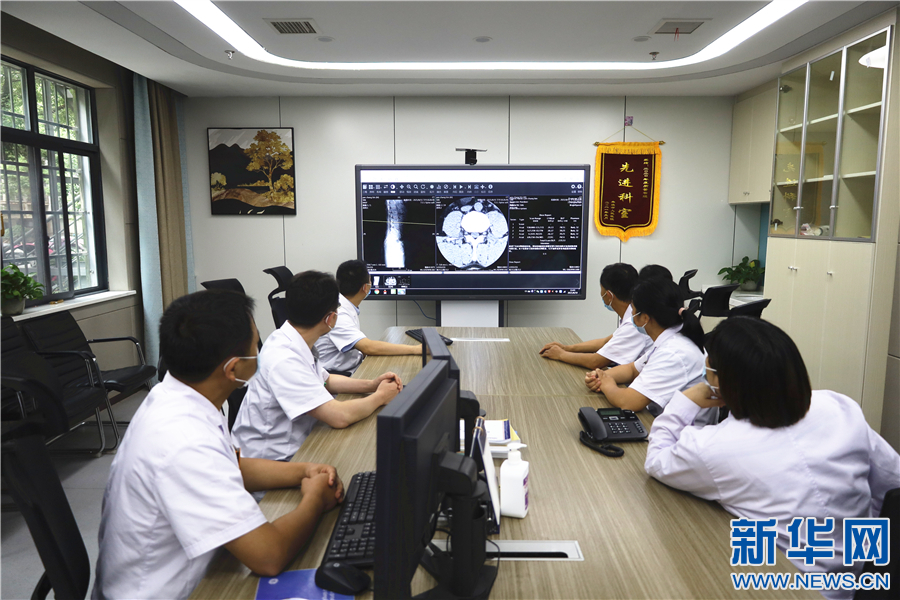 在丰城市人民医院,影像科室医生对患者医学影像进行诊断分析。新华网 王晓震 摄