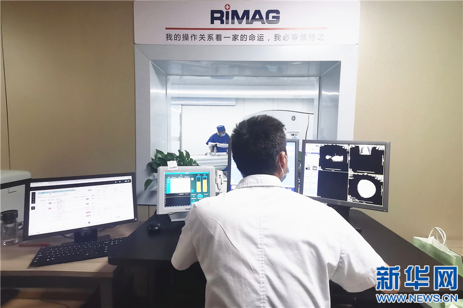 在丰城市影像共享中心,操作医师为患者做医学检查。新华网 王晓震 摄