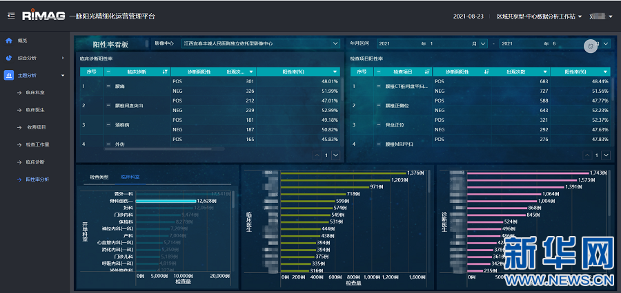 为防范乱收费和乱开单,各级医院收费标准由物价部门统一规定,丰城市影像共享中心引入一脉阳光精细化运营管理平台,影像科室收费数据、工作量数据、阳性率分析一目了然。