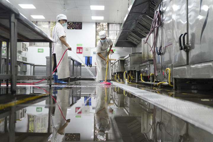8月26日,工作人员对北京师范大学附属嘉兴南湖高级中学教室进行消杀。为保障中小学秋季开学,浙江省嘉兴市教育部门积极做好各项准备工作。新华社记者 徐昱 摄