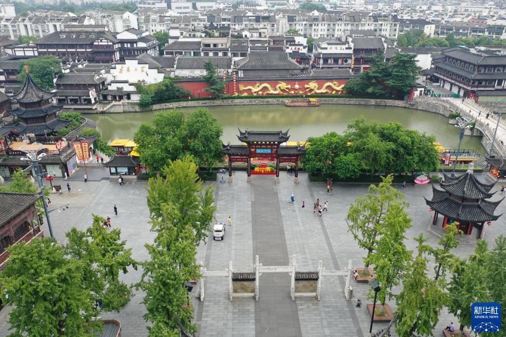 8月27日,游人在南京夫子庙景区游玩(无人机照片)。