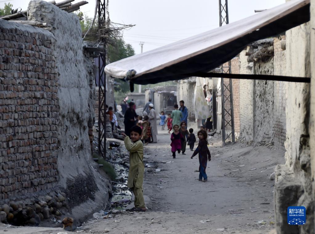 8月28日,阿富汗难民儿童在巴基斯坦白沙瓦的难民营玩耍。