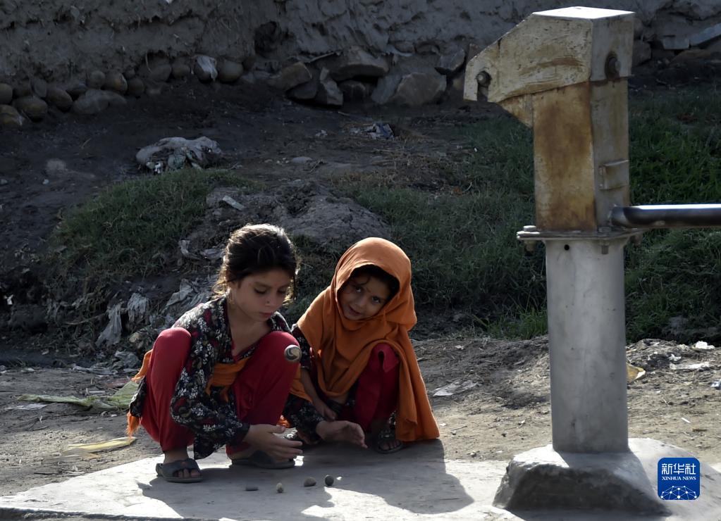 8月28日,阿富汗难民儿童在巴基斯坦白沙瓦的难民营玩耍。