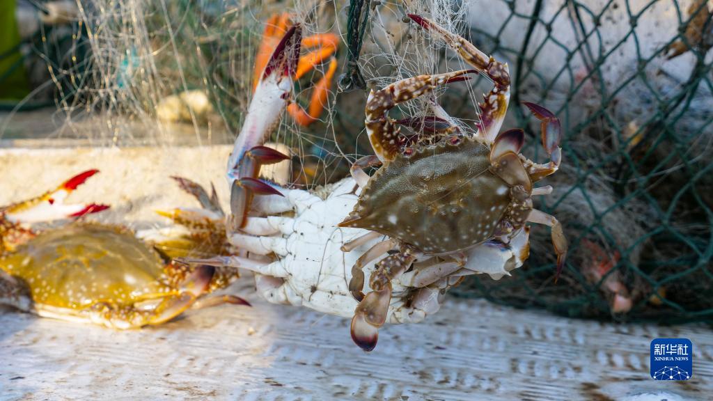 这是胡国新捕获上来的梭子蟹(8月27日摄)。新华社发(周义摄)