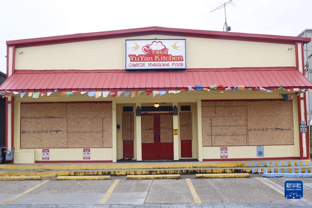 8月29日,在美国南部路易斯安那州新奥尔良市,一家餐厅用木板加固门窗以抵御飓风“艾达”。 新华社发(魏兰摄)