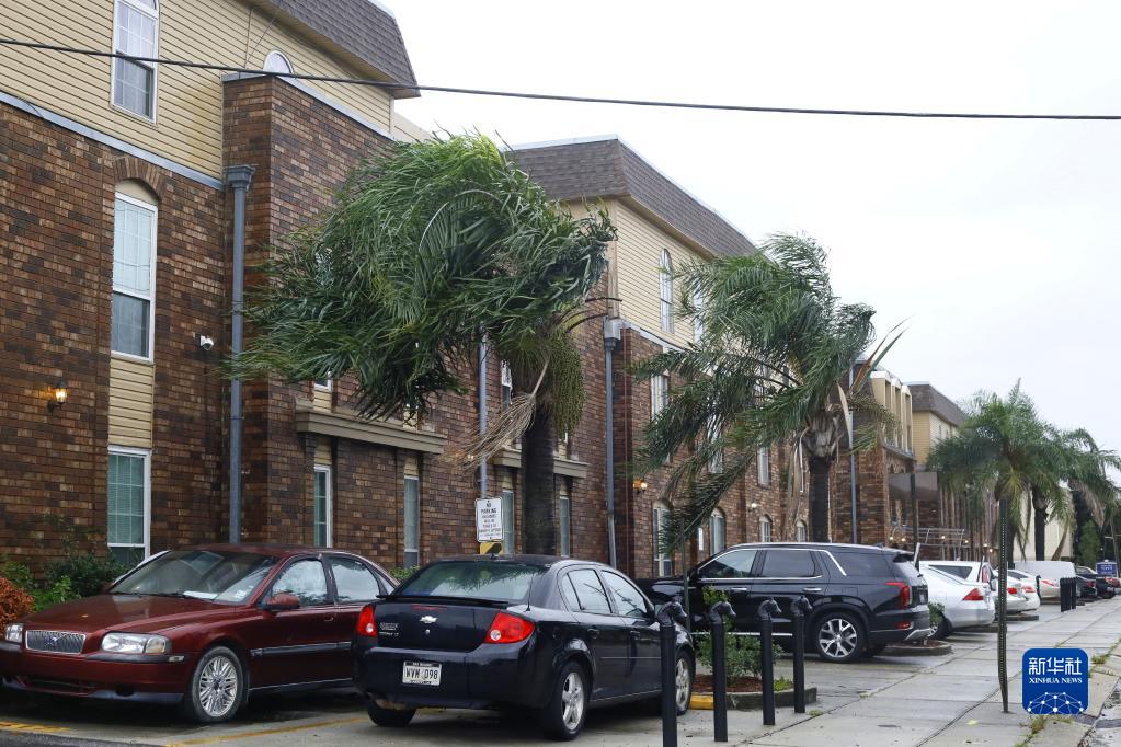 8月29日,在美国南部路易斯安那州新奥尔良市,行道树枝叶在强风中摇摆。 新华社发(魏兰摄)