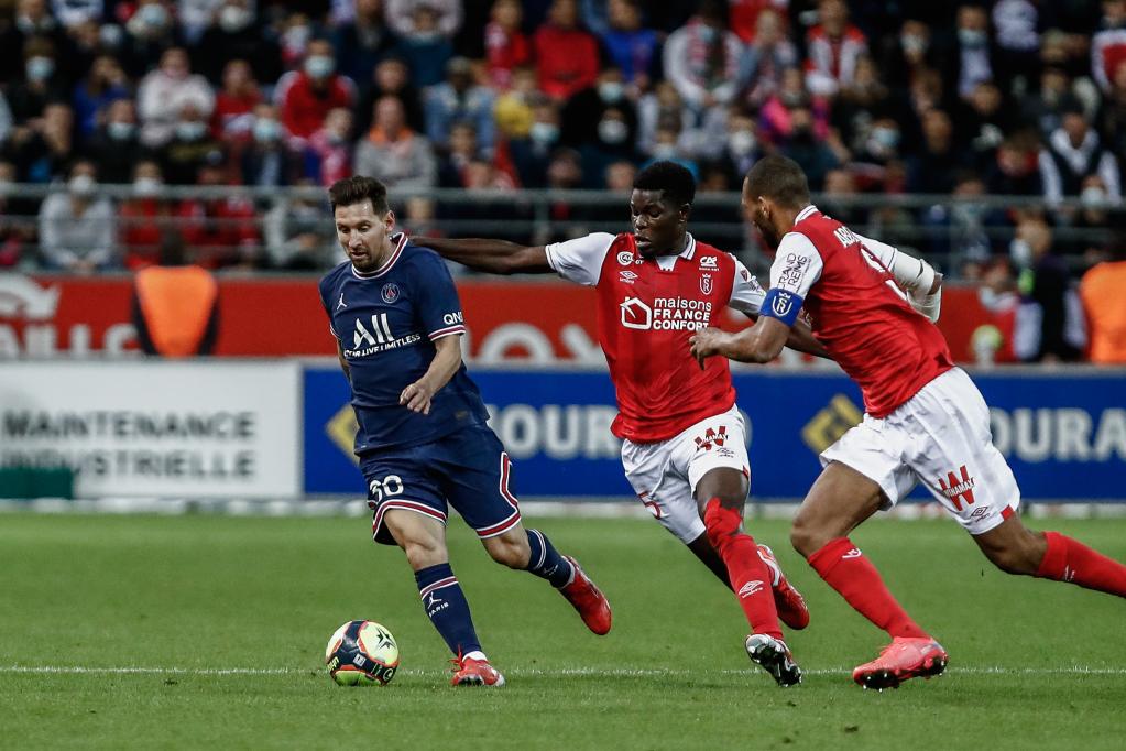 8月29日,巴黎圣日耳曼队球员梅西(左)在比赛中带球突破。新华社发(奥雷利安·莫里萨尔 摄)