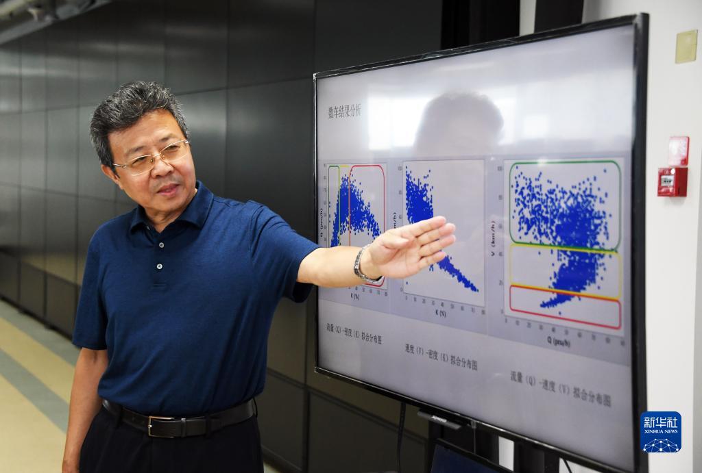 8月30日,在北京交通大学交通大数据实验室,邵春福讲解数车数据分析结果。